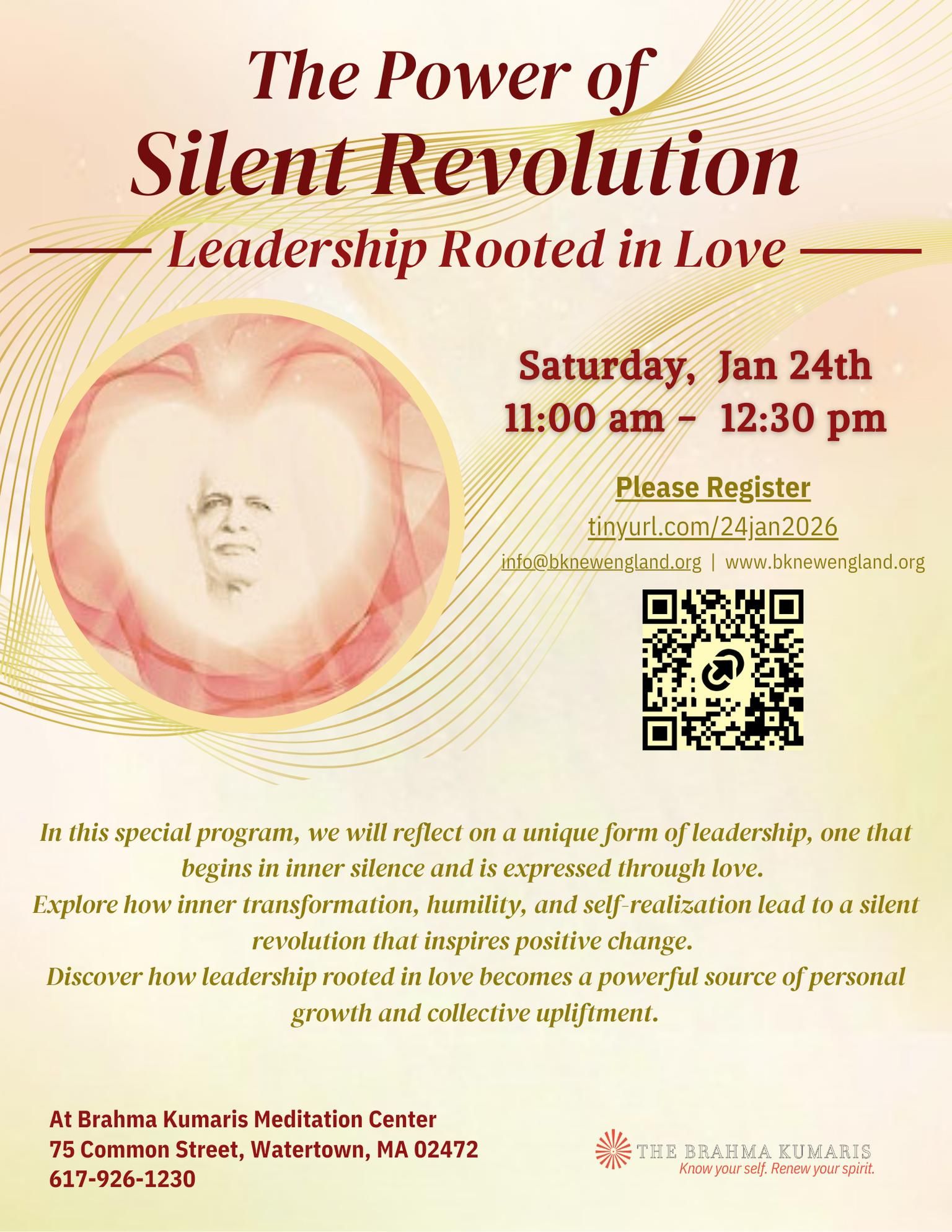 In this special program, we will reflect on a unique form of leadership, one that begins in inner silence and is expressed through love.