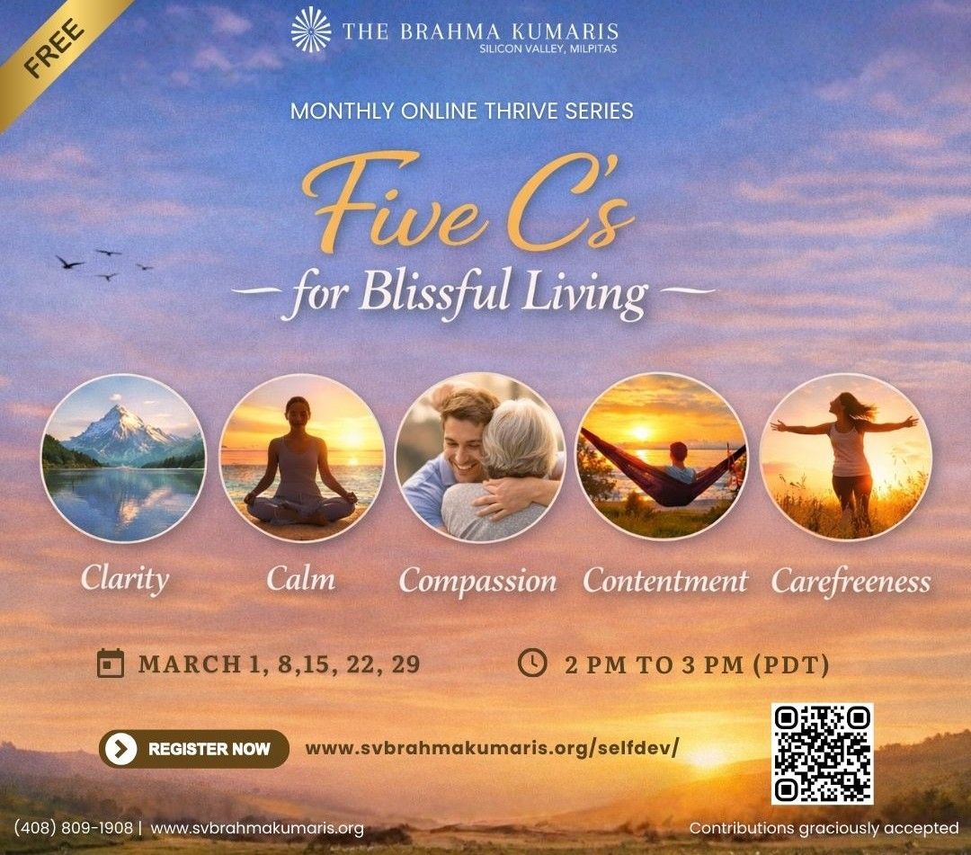 Online FREE Thrive Series: Five C’s for Blissful Living Discover Your Natural State of Bliss